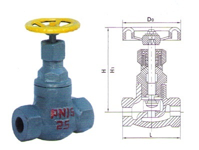 J11B氨用内螺纹截止阀阀体、阀盖材质采用灰铸铁,密封面采用巴氏合金、四氟、尼龙,阀杆采用优良碳钢。体积轻,阻力小,安装方便,可广泛应用于水电站、食品、化工、水产等冷冻冷藏系统。