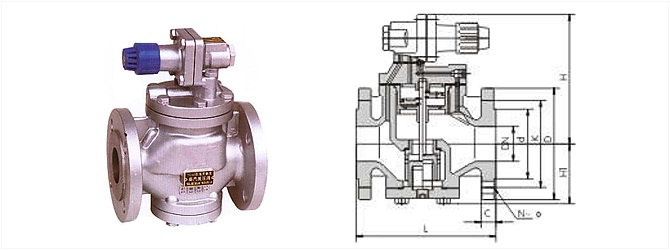 YG13H/Y、YG43H/Y高灵敏度蒸汽减压阀属于先导活塞式减压阀。由主阀和导阀两部分组成。主阀主要由阀座、主阀盘、活塞、弹簧等零件组成。导阀主要由阀座、阀瓣、膜片、弹簧、调节弹簧等零件组成。通过调节调节弹簧压力设定出口压力、利用膜片传感出口压力变化,通过导阀启闭驱动活塞调节主阀节流部位过流面积的大小,实现减压稳压功能。高灵敏度蒸汽减压阀在普通减压阀基础上做了以下改进,加大了活塞面积,改变了节流结构,改变了密封形式,改进了导阀结构和调节弹簧形式,从而从以下几方面提高了产品的性能。