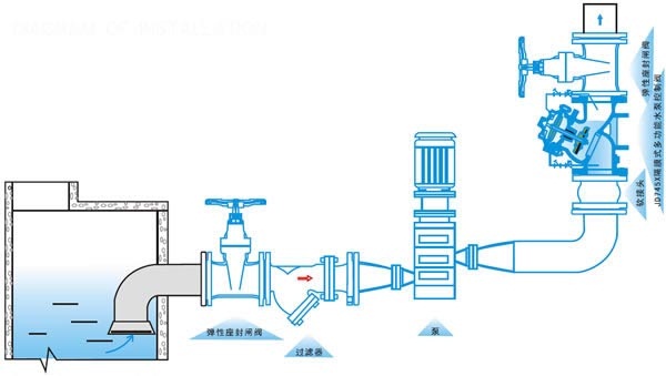 本阀门安装在水泵出口端,顺序实现缓慢开启、全开、速闭、缓闭等功能。
