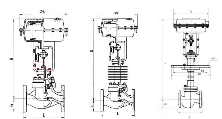 气动单座调节阀 主要外形尺寸