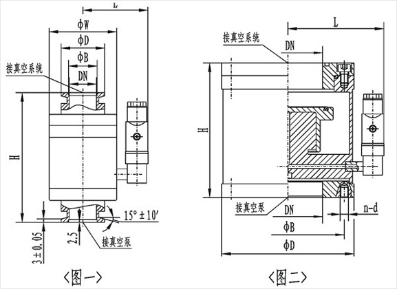DYC-Q型系列低真空电磁压差充气阀是安装在机械真空泵进气口上一种新型真空阀。其工作原理是机械泵的电源和电磁阀线圈的电源接在同一电路上,当机械真空泵因工作需要突然停电、停止运转时,该阀利用大气压力使阀芯自动关闭,截止和真空系统相连的通道,同时向泵内放大气,防止机械泵油返回真空系统,起到了保护真空系统作用,有利于机械泵再启动。