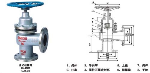 U44SM角式柱塞阀与直通式柱塞阀的工作原理完全相同,只不过是安装在管线中的位置不同,因而石油、化工、化肥、制药等长输管线中有不少的拐角转弯处,而角式柱塞阀正好装在这个部位,这样不但减少了接管弯头,安装方便,省工、省料等特点。